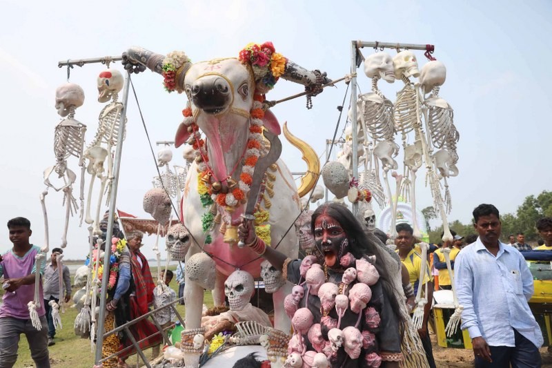 In a striking spectacle of devotion and tradition, devotees carrying idols of gods and goddesses waded through the shimmering waters of Chilika Lake during the centuries-old Panchu Dola Melana festival in Parikuda village of southern Odisha on March 9 this year.