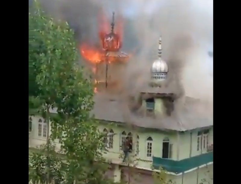 Srinagar: Fire reported in ‘Darul Aloom Syed Aali Balki’ Mosque at Pakherpora area of #Budgam district. pic.twitter.com/MqD1duOXWL