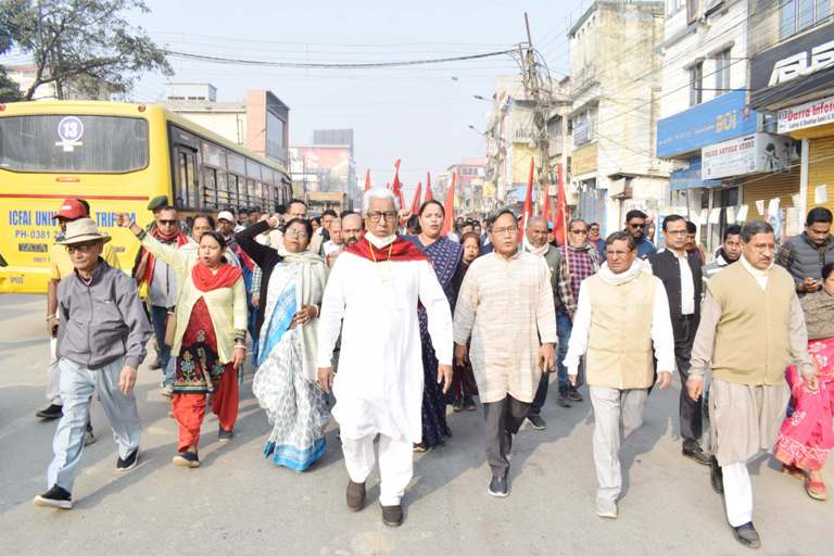 Addressing media persons during the rally, Manik Sarkar claimed that people supported the bandh to safeguard the interests of farmers and labourers. He alleged that the BJP-led Union government was pursuing anti-labour policies and accused it of undermining the farming sector through Indo-US agreements. Sarkar asserted that the strike was not the end of the movement and that larger agitations would follow.