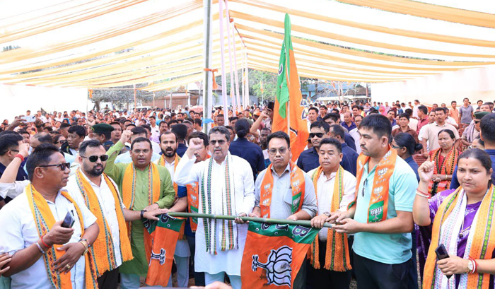 Higher Education Minister Kishore Burman, MLA Sushanta Deb, Sepahijala District Sabhadhipati Supriya Das Dutta, and several other BJP leaders were present at the rally.