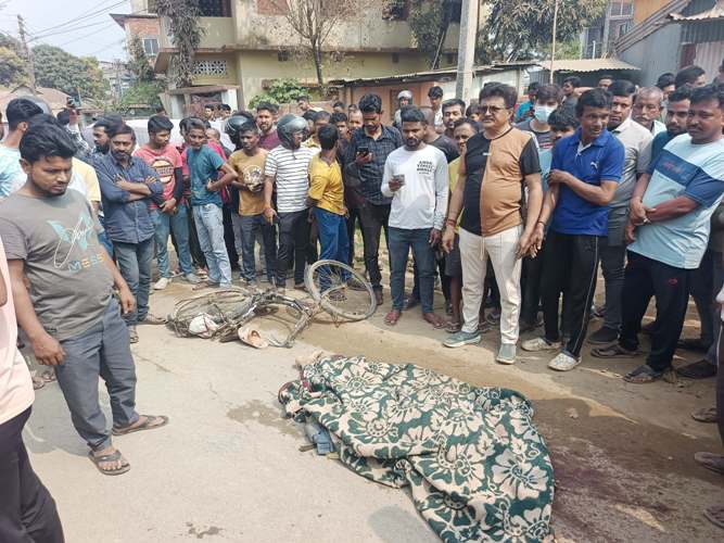 Police sources said that the deceased has been identified as Dipak Kumar Deb, a bicycle rider. The incident occurred in the Moylakhola area under West Agartala police station when a speeding truck (TR-01—BB-1810) hit him while he was riding his bicycle. The impact was so severe that Dipak Deb died on the spot.