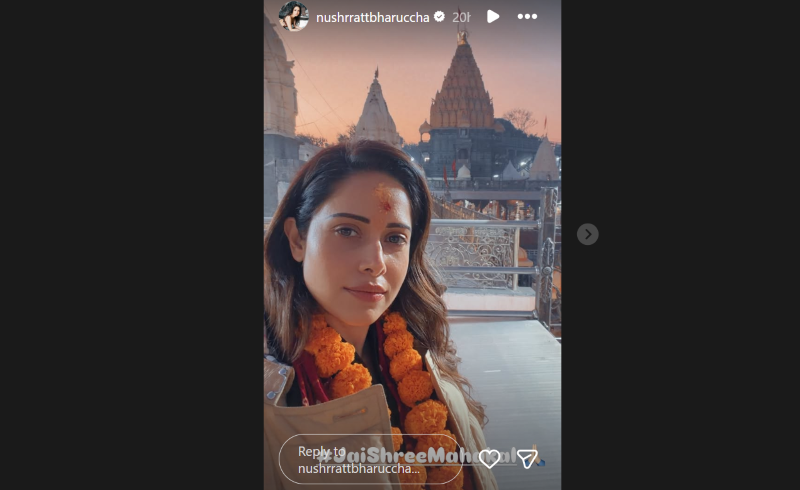 Nushrratt offered prayers to Lord Mahakal and participated in Hindu religious rituals, including pouring water at the temple. The 40-year-old actress later shared a picture from the visit on her Instagram story, captioning it, “Jai Shree Mahakal.”
